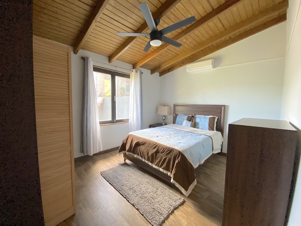 The property is entered in to a high ceiling lobby with steps leading to the bedrooms, laundry and office area. Both bedrooms have AC and built in storage.