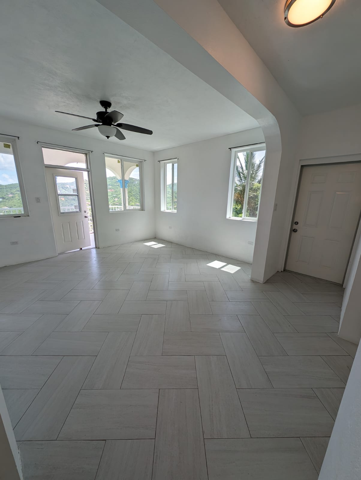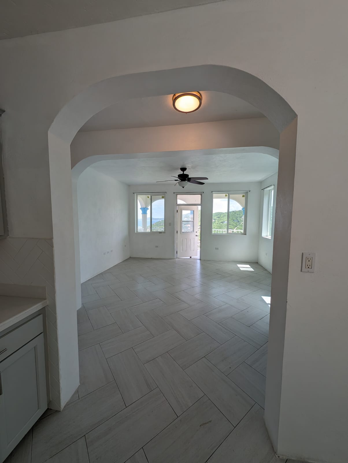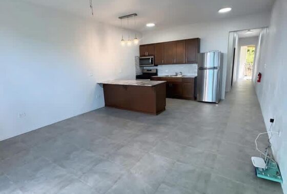 This newly built, spacious apartment is located in the Eastern Side of the island. Top of the hill views of the mountain and ocean can be seen. With a year round breeze for your comfort. A convenient parking spot is right in front of your door for ease of loading or unloading stuff. The 2 bedroom 1 bathroom, unfurnished apartment awaits your creativity as you decorate to your delight. The well proportion kitchen offers ample space for storage and dining pleasures.